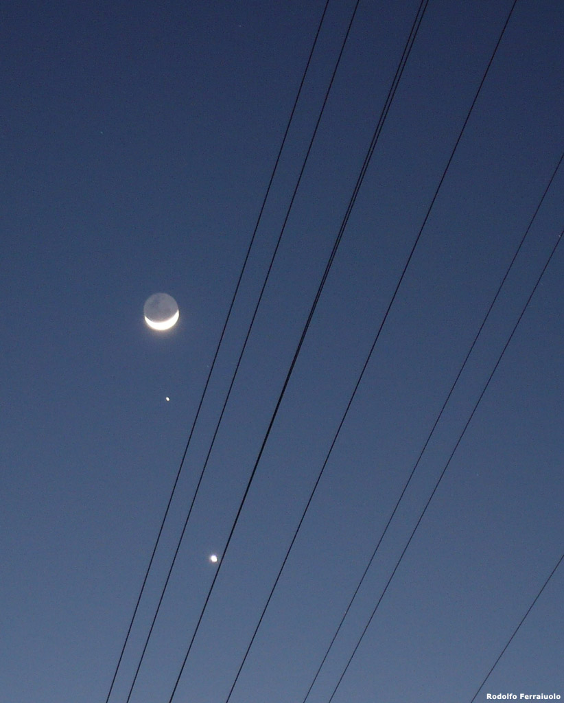 Imágenes de la conjunción entre la Luna, Mercurio y Venus del 5 de Marzo de 2008 antes de amanecer, fotografiada con una cámara digital Panasonic Lumix DMC-LS 70.