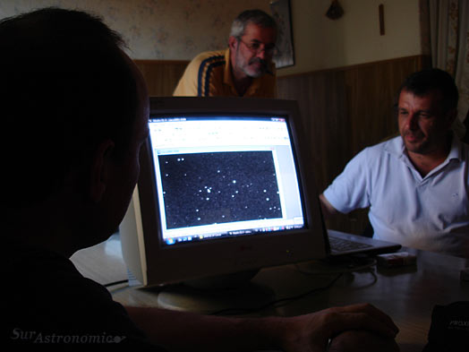 Durante la reunión Carlos Colazo y Fernando Mazzone nos han introducido a la astrometría de forma teórica y práctica. Pudimos ver y realizar el procedimiento completo, desde la localización del asteroide hasta la confección y envío del reporte final al MPC. El principal instrumental utilizado en el observatorio El Gato Gris consta de un telescopio Schmidt-Cassegrain Celestron de 14" (35.5 cm) sobre una montura Celestron CGE. La cámara CCD utilizada para la adquisición de imágenes es una Starlight Xpress SXV-M7. El software utilizado para la reducción de datos es el Astrometrica.